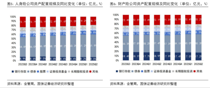另外,银行存款类资产占比约8.6%,其中人身险占比8.0%,说明在银行降息过程中,该类资产性价比减弱,保险在持续减少配置。